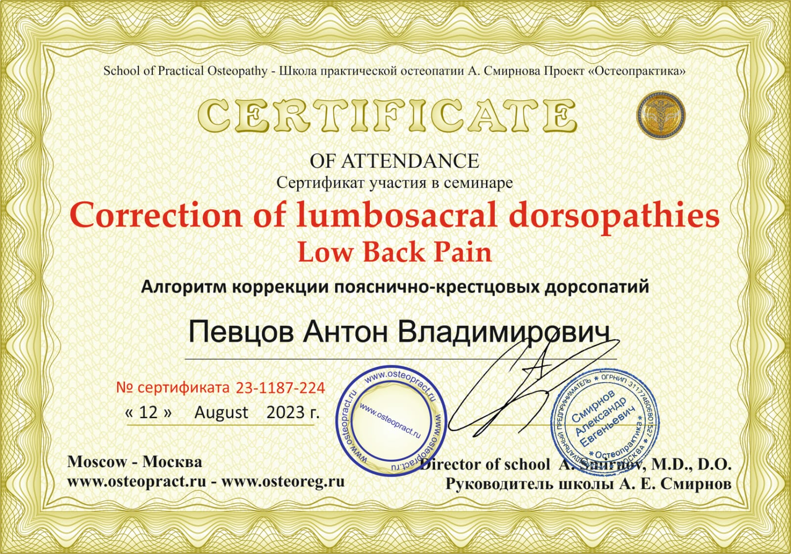 Уровень специалиста остеопрактики