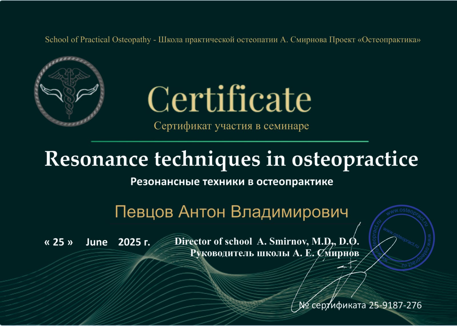 сертификаты Певцова Антона Владимировича